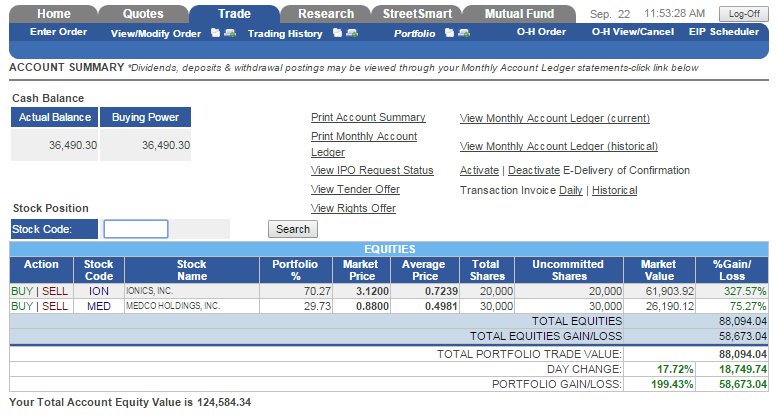 As you may have noticed, my total account equity before the ION trade was a mere P35,000 which is roughly 30% of my total invested capital P114,000.